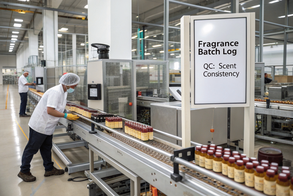 - "What is your QC process for scent? How do you measure and ensure consistency of fragrance intensity across a production run?" (Answers should include olfactory panels and possibly gas chromatography for benchmarking).