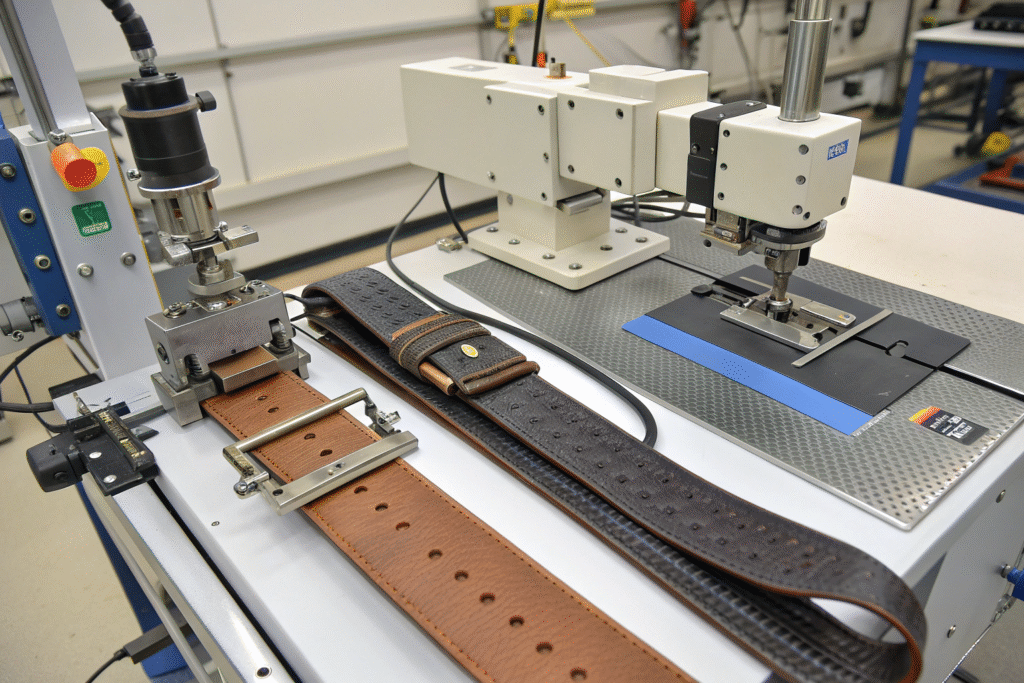 The area around the buckle holes receives the most concentrated abrasion. To simulate this, we've developed a simple but effective test: a machine that repeatedly pulls the belt strap through a standard buckle at a consistent angle and tension. This test runs for thousands of cycles—simulating years of use in days. We then examine the test sample for: