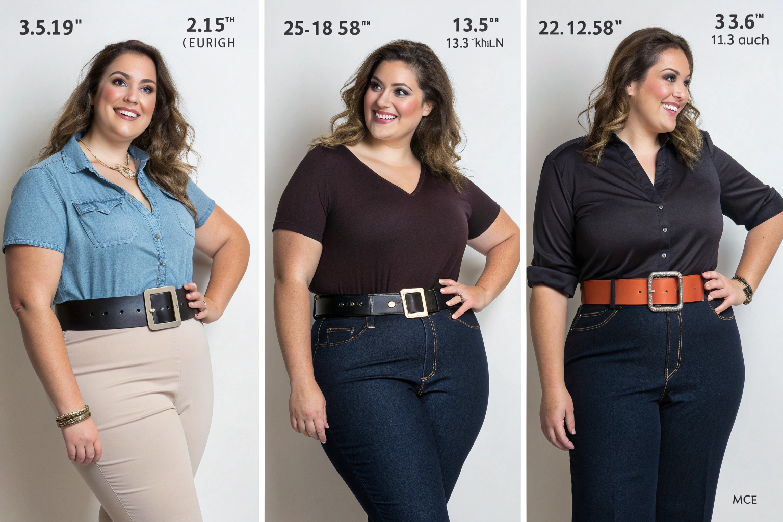 For waist definition, 2-inch to 2.5-inch widths typically deliver the most flattering results on plus-size figures. This width is substantial enough to create a visible waistline without appearing disproportionate. When placed at the natural waistline, this width helps create the coveted hourglass silhouette by clearly marking the narrowest part of the torso. The proportion principle in styling suggests that accessories should scale to body size, making medium-width belts ideal for defining curves without overwhelming the frame.