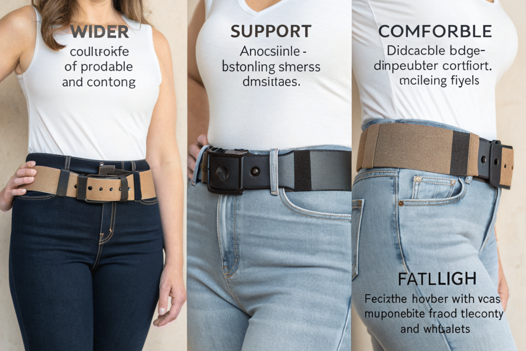 Comfort increases with width up to a point, as broader surfaces distribute pressure across a larger area. For plus-size customers, 2.5-inch widths often provide the ideal balance of support and flexibility. Beyond 3 inches, belts may become restrictive during movement, particularly when sitting. The ergonomic design principle of pressure distribution confirms that wider support surfaces reduce localized pressure points, making medium-to-wide belts more comfortable for extended wear.