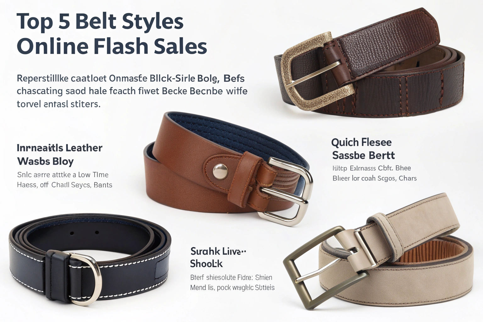 The top 5 belt styles for online flash sales are reversible leather belts, minimalist webbing belts, elastic waistband belts, quick-release buckle belts, and convertible multi-wear belts. These styles succeed because they solve specific customer problems, offer clear value propositions, demonstrate well in product visuals, and address immediate wardrobe needs that drive impulse purchases during time-sensitive sales events.