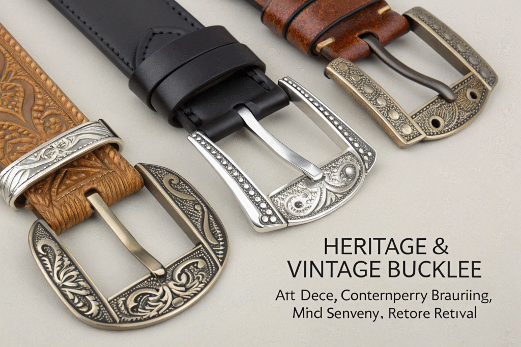 Heritage and vintage-inspired buckles are experiencing a renaissance, but with contemporary interpretations that avoid costume-like reproduction. Designers are revisiting historical styles from the Art Deco, Mid-Century Modern, and Retro periods, refining them for today's formal standards and manufacturing capabilities.