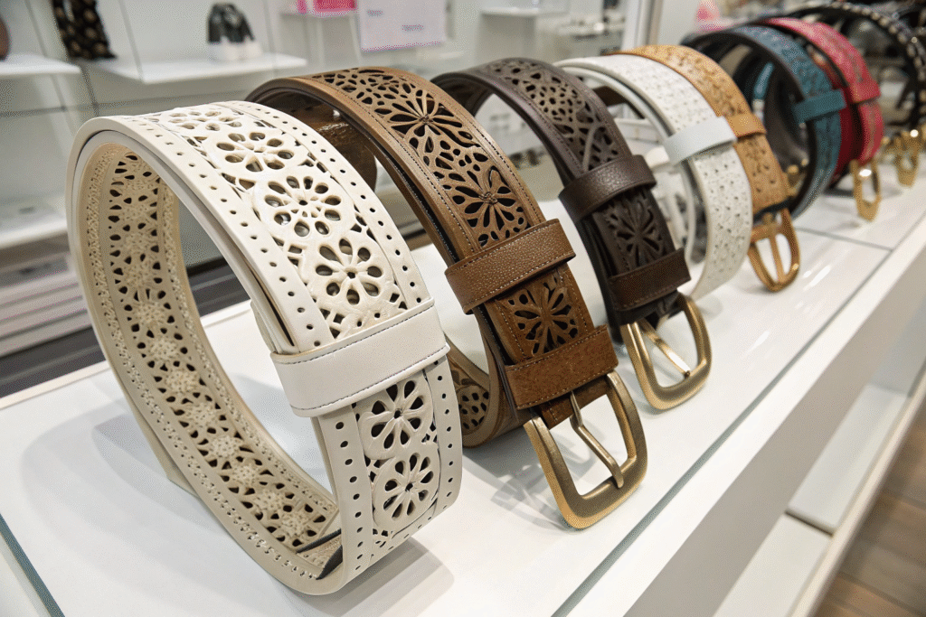 Unlike plain leather belts that rely mainly on color and buckle style, laser-cut belts offer additional visual dimensions through their patterns and textures. This gives retailers more storytelling opportunities and visual variety in their displays. For department stores and fashion boutiques, this means more creative merchandising possibilities and higher perceived value across the entire accessory department.