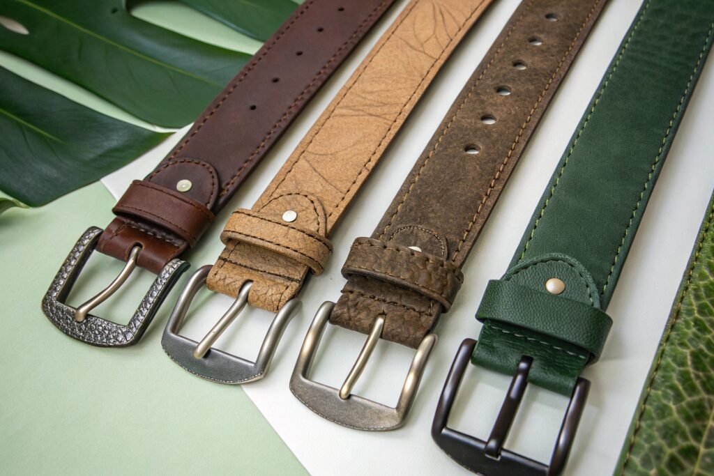 Vegan leathers help brands move away from petroleum-based synthetics while still offering fashionable, animal-free belts. New-age vegan materials are increasingly durable, ethical, and biodegradable.