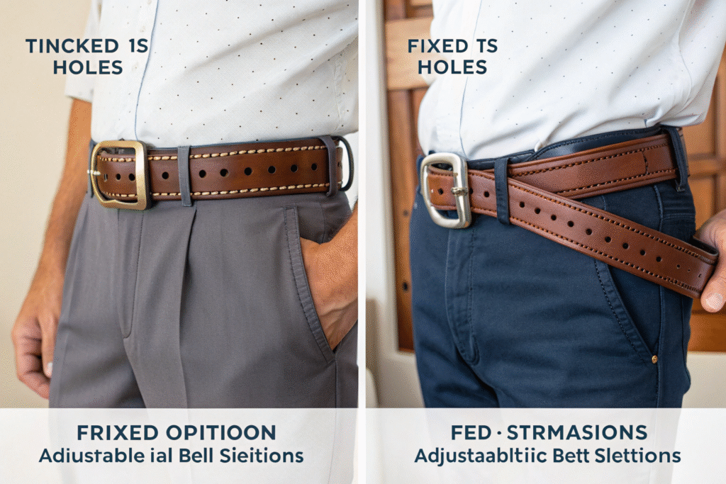 Traditional belt sizing forces customers into a flawed selection process where they must choose from limited, standardized sizes that rarely match individual body proportions. The fixed hole system provides only 4-5 wearing positions, typically spaced 1-1.5 inches apart, creating a situation where the perfect fit often falls between holes.