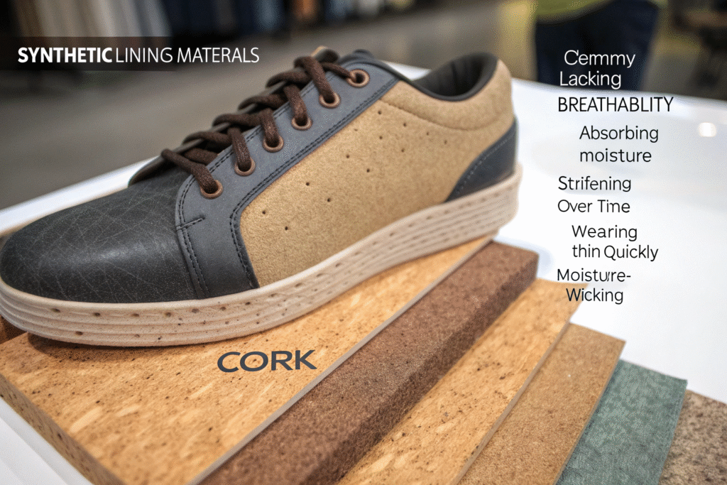 Synthetic linings like polyester or nylon often feel clammy against the skin and lack breathability. Genuine leather linings, while premium, absorb moisture and can stiffen over time. Cotton linings wear thin quickly and lose their moisture-wicking properties. Cork maintains its performance characteristics throughout the product's lifespan.