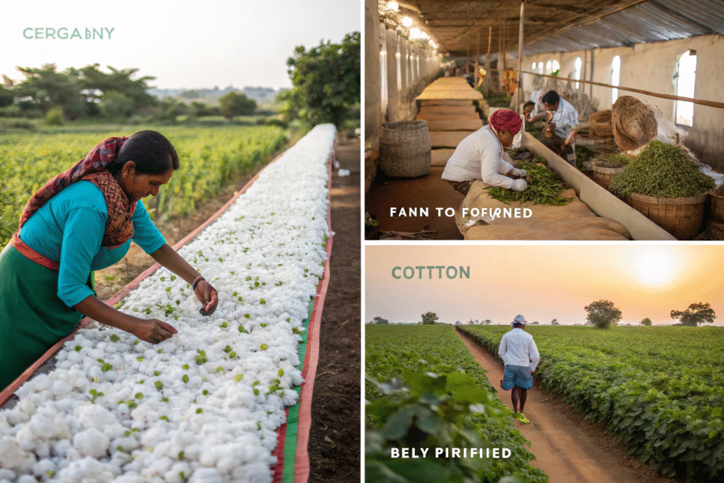 The elimination of synthetic pesticides and fertilizers protects water systems, soil health, and biodiversity. Organic fields support 50% more pollinators than conventional cotton farms and use 91% less water from blue sources (rivers and aquifers). The crop rotation practices typical of organic farming also improve soil carbon sequestration, making organic cotton fields net carbon sinks rather than sources.